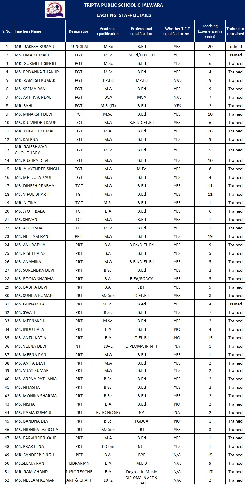 Teaching Staff Detail